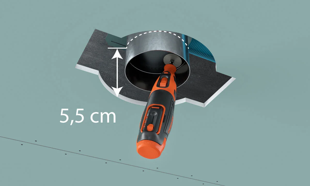 Tiek īsinātas pieslēguma caurules: tām ir jābūt 5,5 cm dziļāk nekā ģipškartona griestu virsma